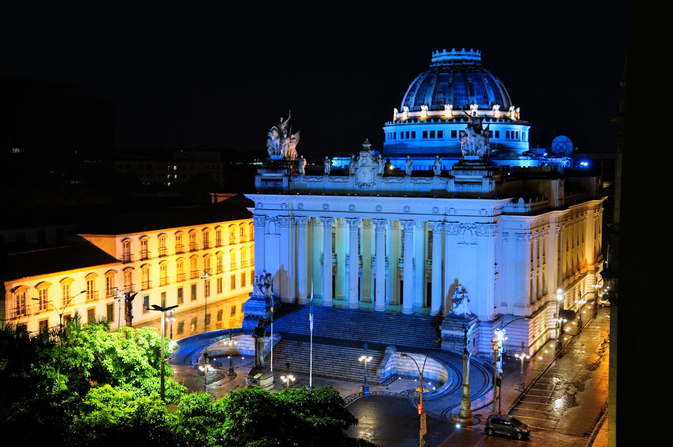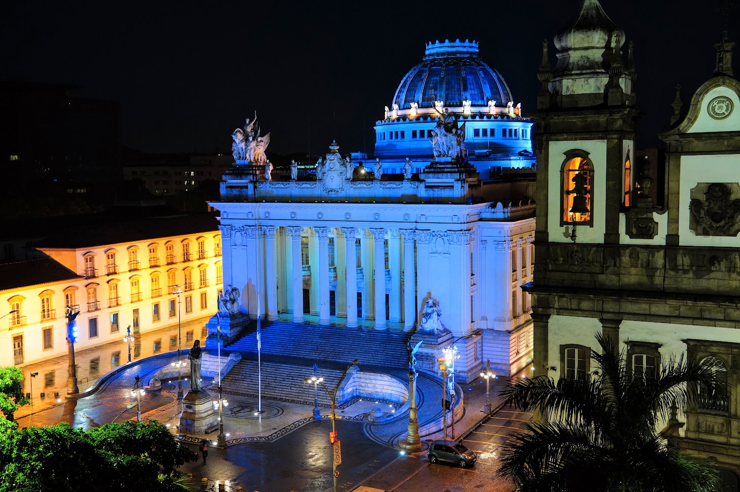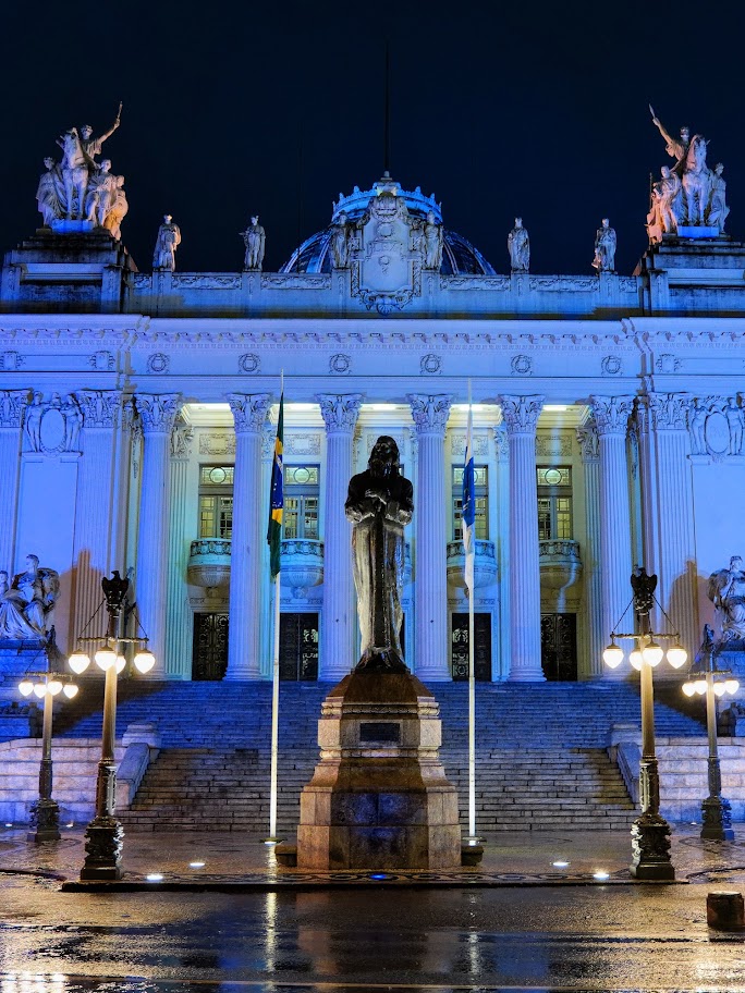 A fachada do histórico Palácio Tiradentes, antiga sede da Assembleia Legislativa do Estado do Rio de Janeiro (Alerj), ganhou iluminação especial numa coloração azulada em adesão à campanha Novembro Azul, mês de conscientização sobre o câncer de próstata. O Parlamento fluminense tem adotado essa prática de iluminar o palácio em diferentes cores como forma de apoiar campanhas institucionais que chamem a atenção do público para cuidados de prevenção, como aconteceu também no caso do Outubro Rosa.