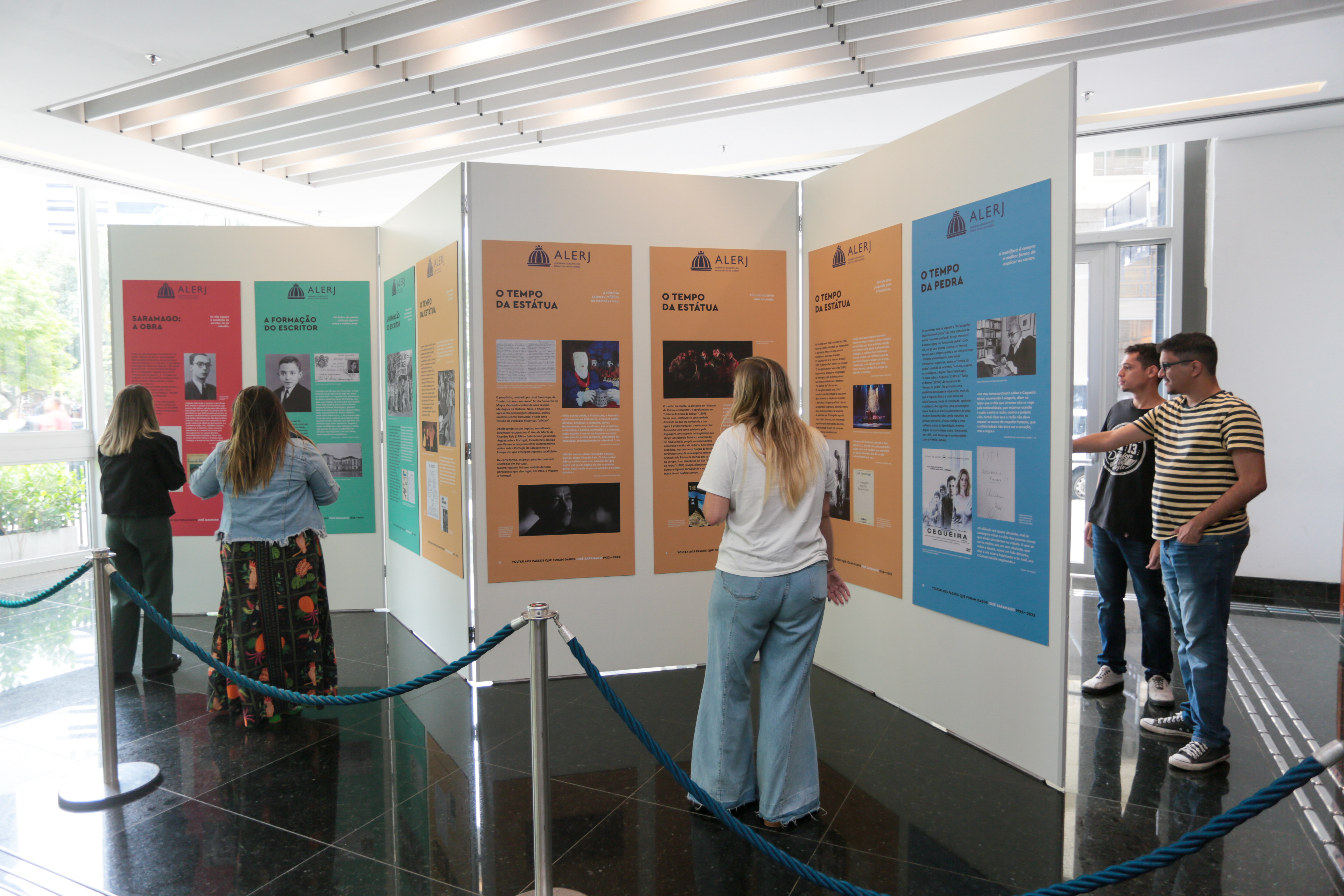 Vida e obra de José Saramago são celebradas na exposição temporária “Volta aos passos que foram dados”, que ocupa a galeria do Plenário da Assembleia Legislativa do Estado do Rio de Janeiro (Alerj), aberta ao público até 30 de dezembro. Painéis com textos e fotos traçam um circuito de memória com os grandes momentos da trajetória literária do escritor português, nos seus cem anos de nascimento. A instalação, inaugurada nesta terça-feira (29/11), é promovida pela Subdiretoria de Expediente e Comunicações da Casa.