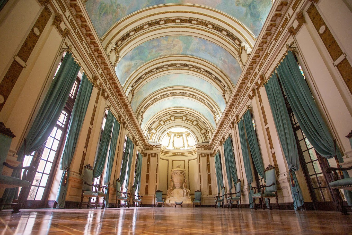 Entre as novidades da visita que podem ser conferidas pelos turistas e que foram promovidas pela recente revitalização do Palácio Tiradentes está o histórico e restaurado Salão Nobre. O espaço ganhou novas cortinas, teve o mobiliário de madeira de lei, estátuas e lustres de época recuperados, assim como a cor original das paredes internas e o sinteco do piso, que voltou a exibir o brilho original.