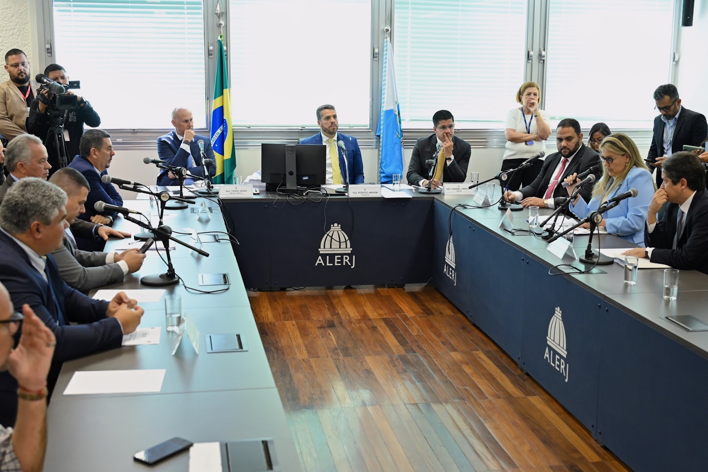 Também estiveram presentes na reunião os deputados Alan Lopes (PL), Brazão (União), Carlos Macedo (REP), Jorge Felippe Neto (Avante), Thiago Rangel (Pode) e Val do Ceasa (Patriota) e o delegado titular da Delegacia de Defesa dos Serviços Delegados (DDSD), Marcello Braga Maia.