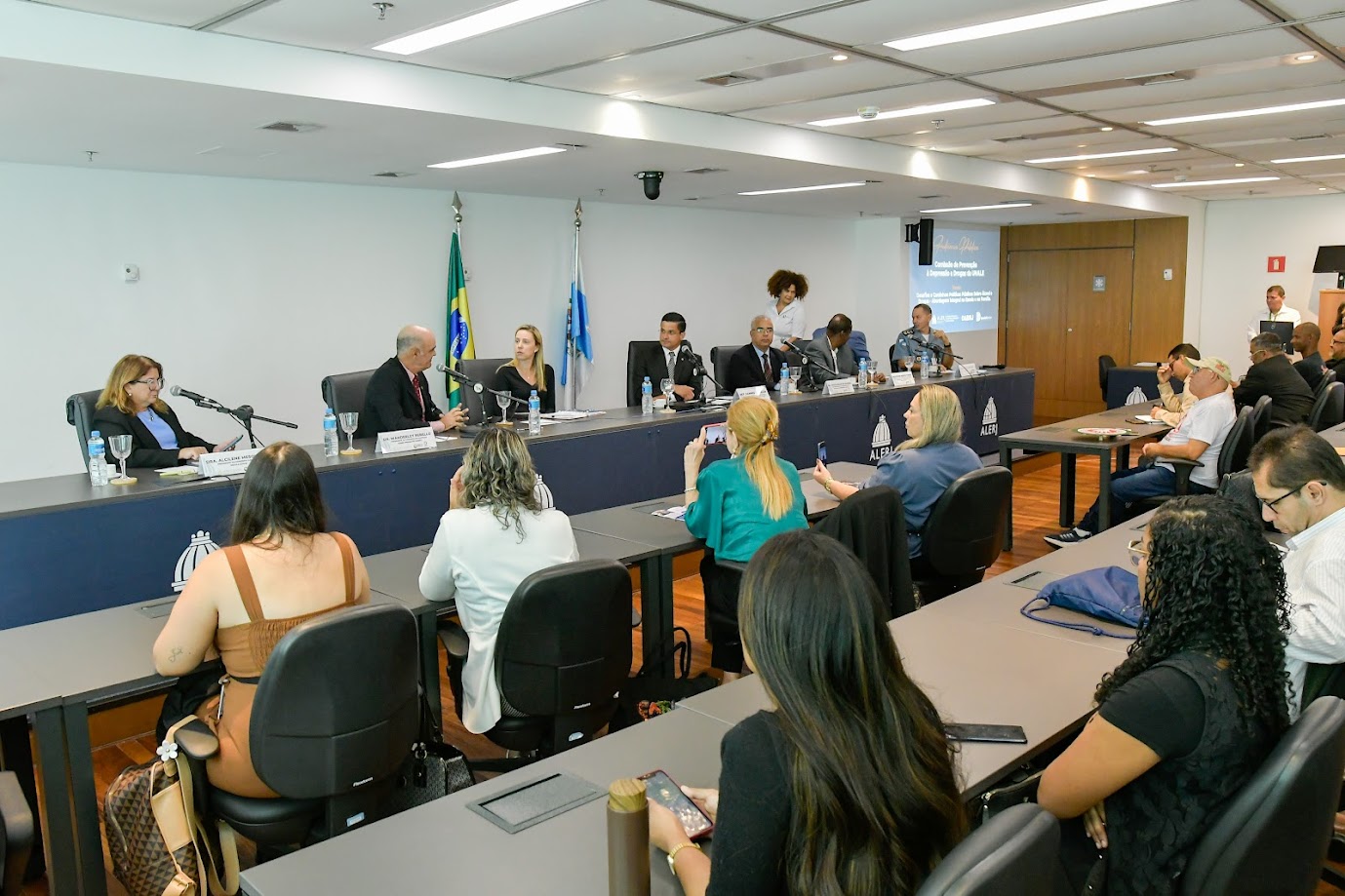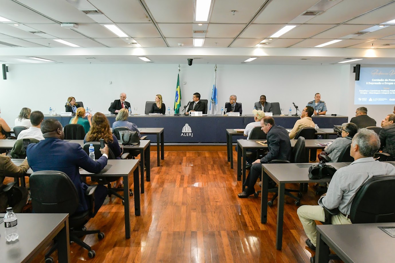 A Comissão de Prevenção ao Uso de Drogas e Dependentes Químicos em Geral, da Assembleia Legislativa do Estado do Rio de Janeiro (Alerj), se reuniu em audiência pública nesta quarta-feira (21/05) para debater a criação de políticas públicas de prevenção ao uso de álcool e drogas. Durante a reunião, que foi realizada em conjunto com a Comissão de Prevenção à Depressão e Drogas, da União Nacional dos Legisladores e Legislativos Estaduais (Unale), o colegiado afirmou que irá dialogar com a Secretaria de Estado de Educação (Seeduc) para criação de medidas preventivas dentro das escolas para conscientização dos jovens. O colegiado anunciou, também, a criação de um Grupo de Trabalho (GT) para uma discussão mais aprofundada sobre o tema.