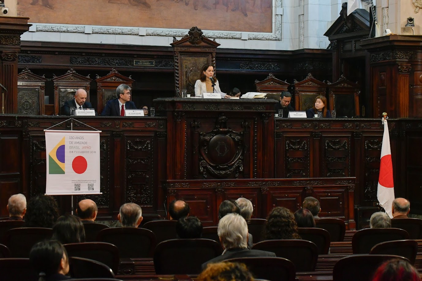 A deputada Elika Takimoto (PT) abriu a cerimônia destacando a importância de celebrar a sólida relação diplomática entre Brasil e Japão, construída com respeito, amizade e cooperação. “Estou muito emocionada e feliz porque como primeira deputada autodeclarada amarela desta Casa Legislativa é uma honra presidir esta sessão solene. Ao celebrar os 130 anos de relações diplomáticas entre os dois países, também estamos homenageando a valiosa contribuição dos imigrantes japoneses para o desenvolvimento do Brasil, nas ciências, na agricultura, na cultura e em tantos outros campos que enriquecem a nossa sociedade”, disse.